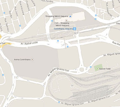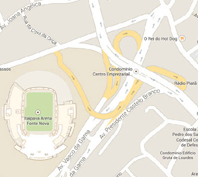 Embarque na Avenida Vasco da Gama, ponto de encontro no acesso da avenida próximo ao Estádio