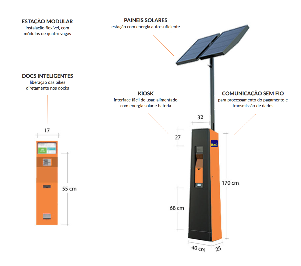 - Solução modular para as bicicletas, sendo possível adicionar ou remover docks conforme a necessidade. Sem necessidade de fixação ao solo